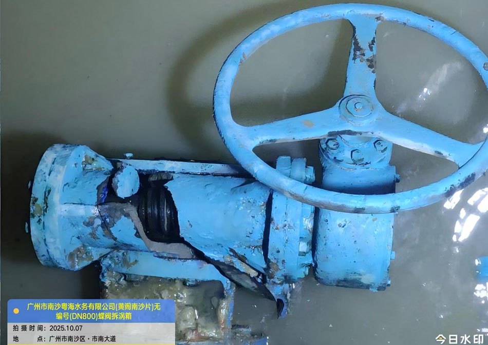 广州市南沙粤海水务黄阁片区的DN800法兰蝶阀,作为区域供水管网的关键 “水脉开关”,近期因井下作业环境复杂,其驱动核心 —— 涡轮箱出现严重破损,导致阀门启闭受阻,直接威胁周边居民用水与工业供水稳定。该DN800蝶阀型号为D343X-10C,承担着大流量水体调控的重要职能,涡轮箱的突然失效,亟需快速响应的焕新方案。